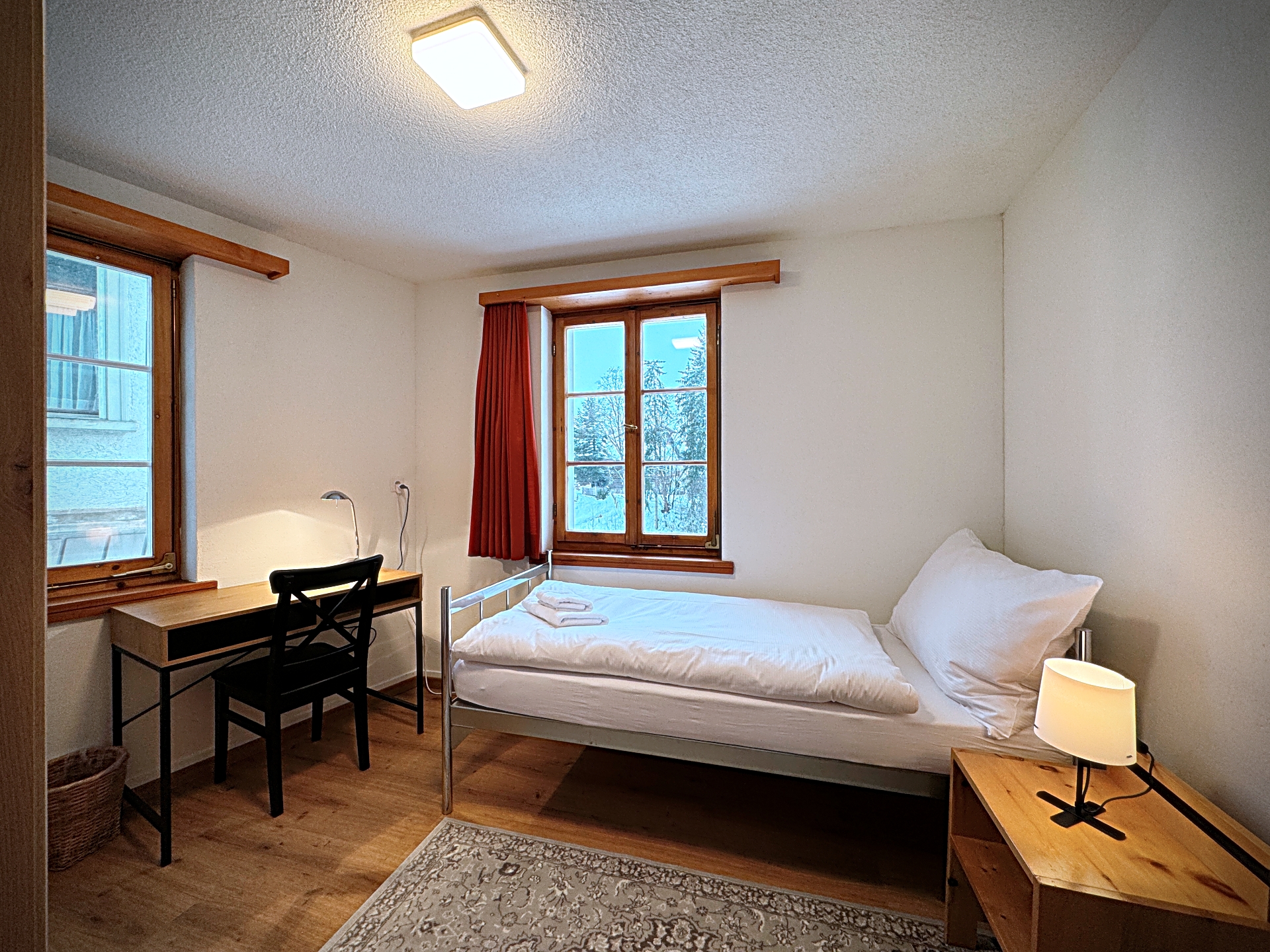 Wohnung 2, Obergeschoss (100m2)Entdecken Sie unsere bezaubernde Ferienwohnung in Bergün, zentral gelegen im nahe dem Bahnhof und Dorfkern des malerischen Bergün. Genießen Sie den atemberaubenden Blick auf die Berge und den Komfort von 3-4 Schlafzimmern für bis zu 7 Personen, einer voll ausgestatteten Küche und einem Badezimmer mit WC, Dusche und Badewanne. Das großzügige Wohnzimmer lädt zum Entspannen ein, während kostenloses WLAN Sie stets verbunden hält. Erkunden Sie die zahlreichen Freizeitmöglichkeiten wie Skifahren und Winterwandern oder besuchen Sie bei schlechtem Wetter das nahegelegene Bahnmuseum. Abstellmöglichkeiten für Wintersportgeräte und Parkplätze gegen Bezahlung sind ebenfalls vorhanden.Hinweis: Der Eingang des Zimmers 4 befindet sich gleich neben dem Wohnungseingang. Das Zimmer kann nicht durch die Wohnnung begangen werden.