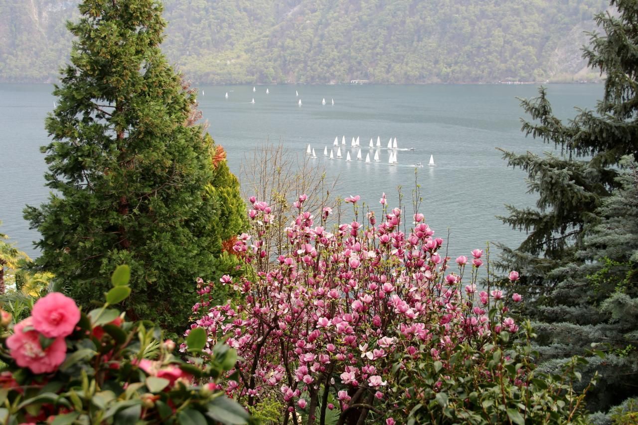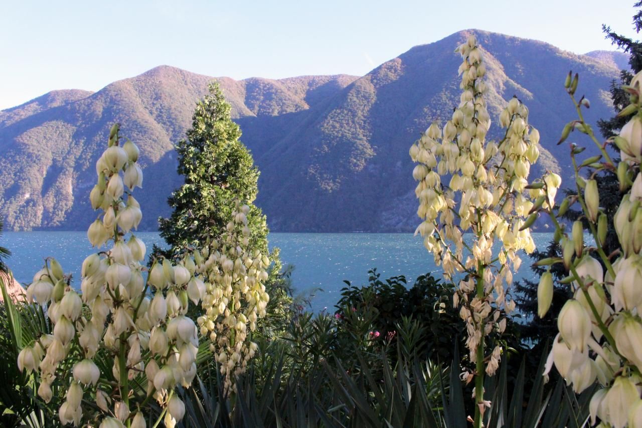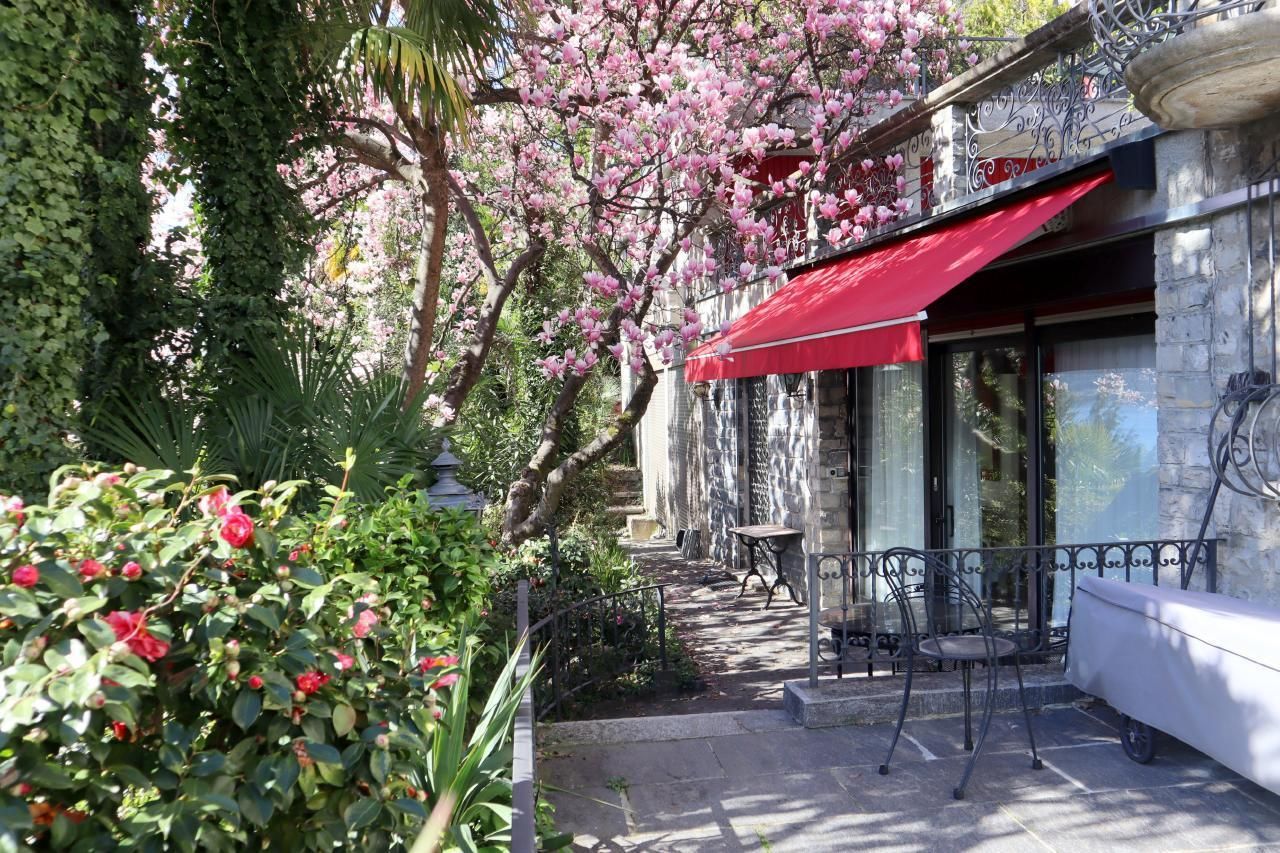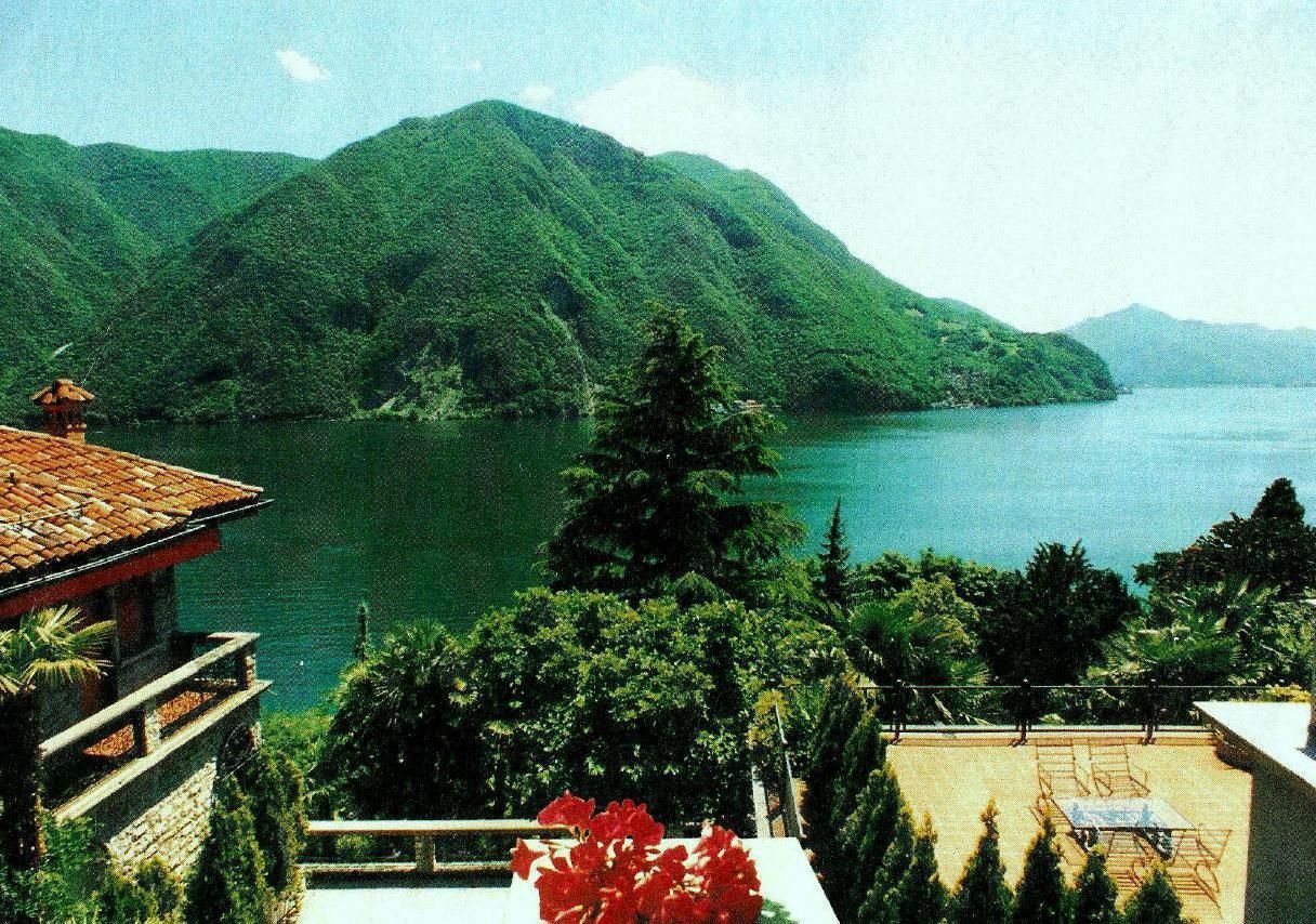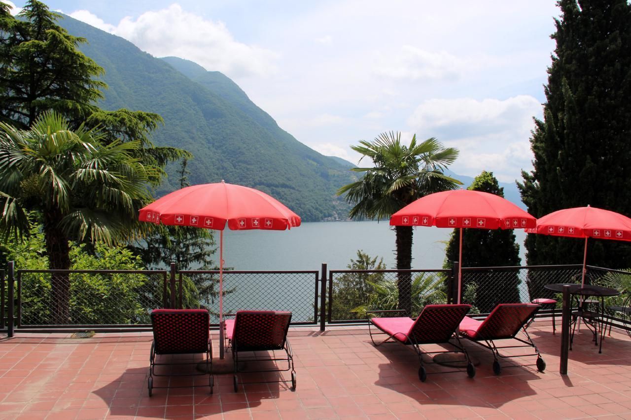 Eingang von aussen -- mit Terrassen/Balkonen für 1-8 Personen befindet sich im exklusiven Bezirk von Lugano-Castagnola am Fusse des Monte Bre der meist besonnte Berg der Schweiz). Die aussergewöhliche Residenz thront über einem terrassierten mediterranen Baumgarten (naturnah) mit Palmen zwischen privater Sackgasse Via Violetta und antikem Oliven-Fussweg von Lugano-Castagnola zum sehenswerten Fischerdorf Gandria (1,3 km) gelegen.