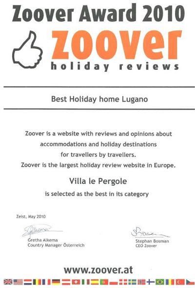 Zoover Auszeichnung 2010 bis 2012: Bestes Ferienhaus Lugano - Highly recommended