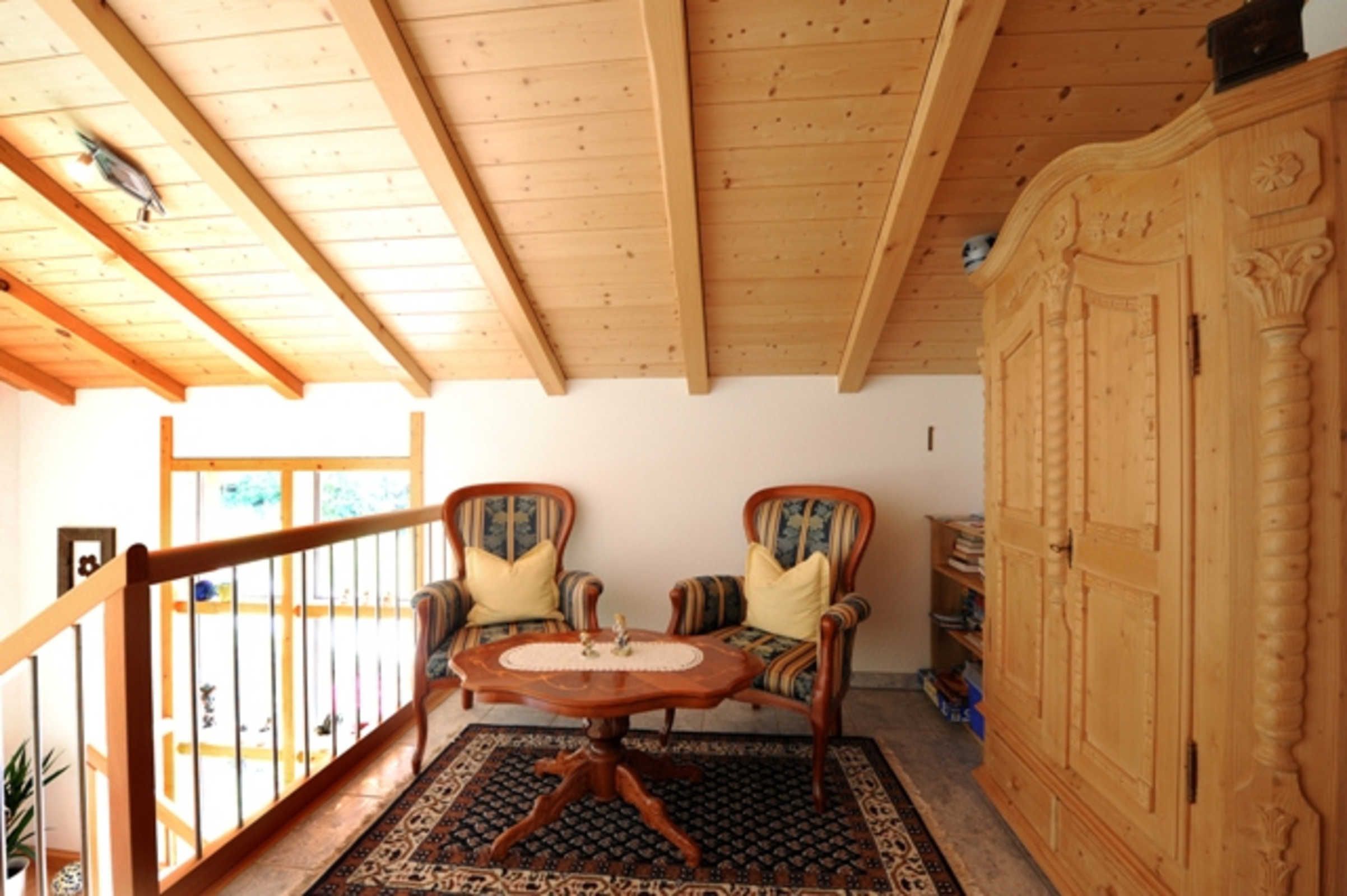 Im Keller befindet sich ein geräumiger Schuh- und Fahrradraum. Weiters verfügt unser Haus über eine große Sonnenterrasse (mit Gartenmöbeln).