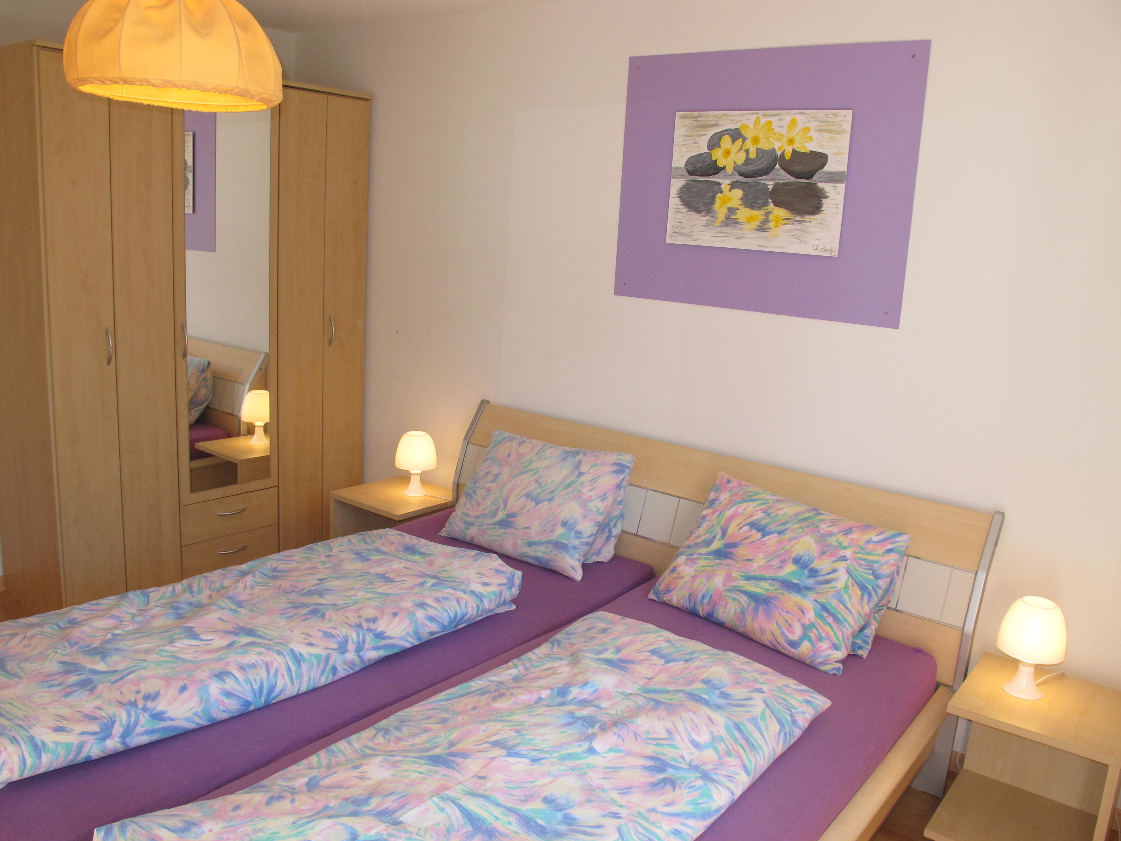 Die Wohnung ist geschmackvoll, gemütlich und hell eingerichtet, gute und komplette Ausstattung. Gemütliche Dachschrägen mit Blick auf die offene Holzkonstruktion. Kabel-TV. Fliesenböden, in den Schlafzimmern jeweils Laminatböden. Großer, überdachter Südbalkon mit Mobiliar und sehr schönem Blick bis zum Skigebiet von Saas-Fee und Allalin.