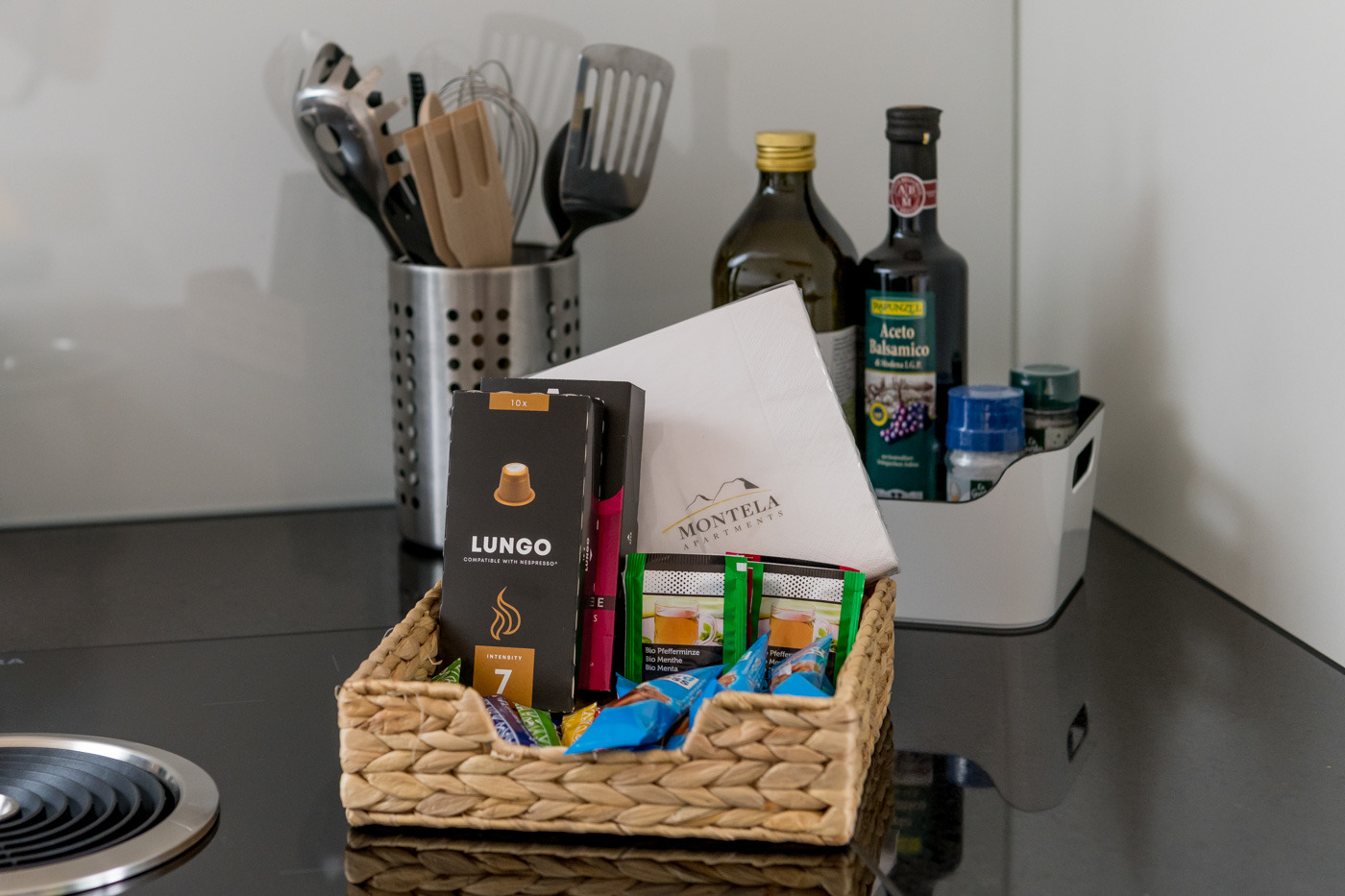 Die modernen Wohnungen sind geschmackvoll, gut und hell eingerichtet, sehr gute Ausstattung. Jeweils Kabel-Flat-TV (Apple-TV) und Radio. Die Küchen sind sehr gut und vollständig ausgestattet mit EInbauherd (4 Ceranfelder), Backofen, Mikrowelle, Geschirrspüler, Kühl-/Gefrierkombination, Kaffeemaschine, Nespresso-Kapsel-Kaffeemaschine, Wasserkocher, Toaster, Fondue-Rechaud und Raclette-Gerät. Holzdielenböden im Wohnraum und Schlafzimmern mit Fußbodenheizung. Jedes Bad mit Haartrockner.