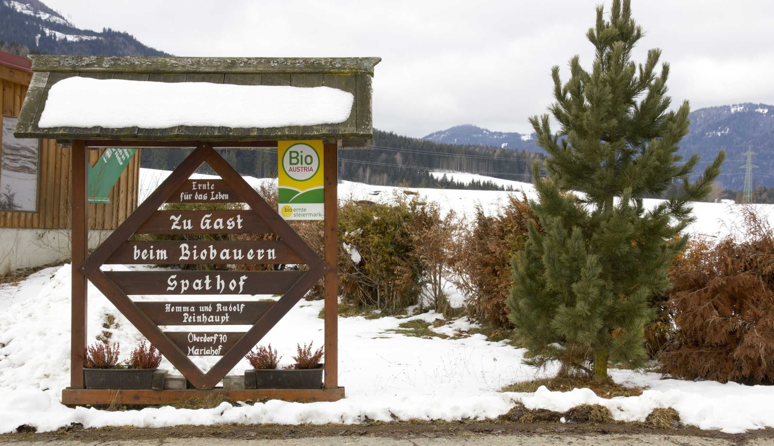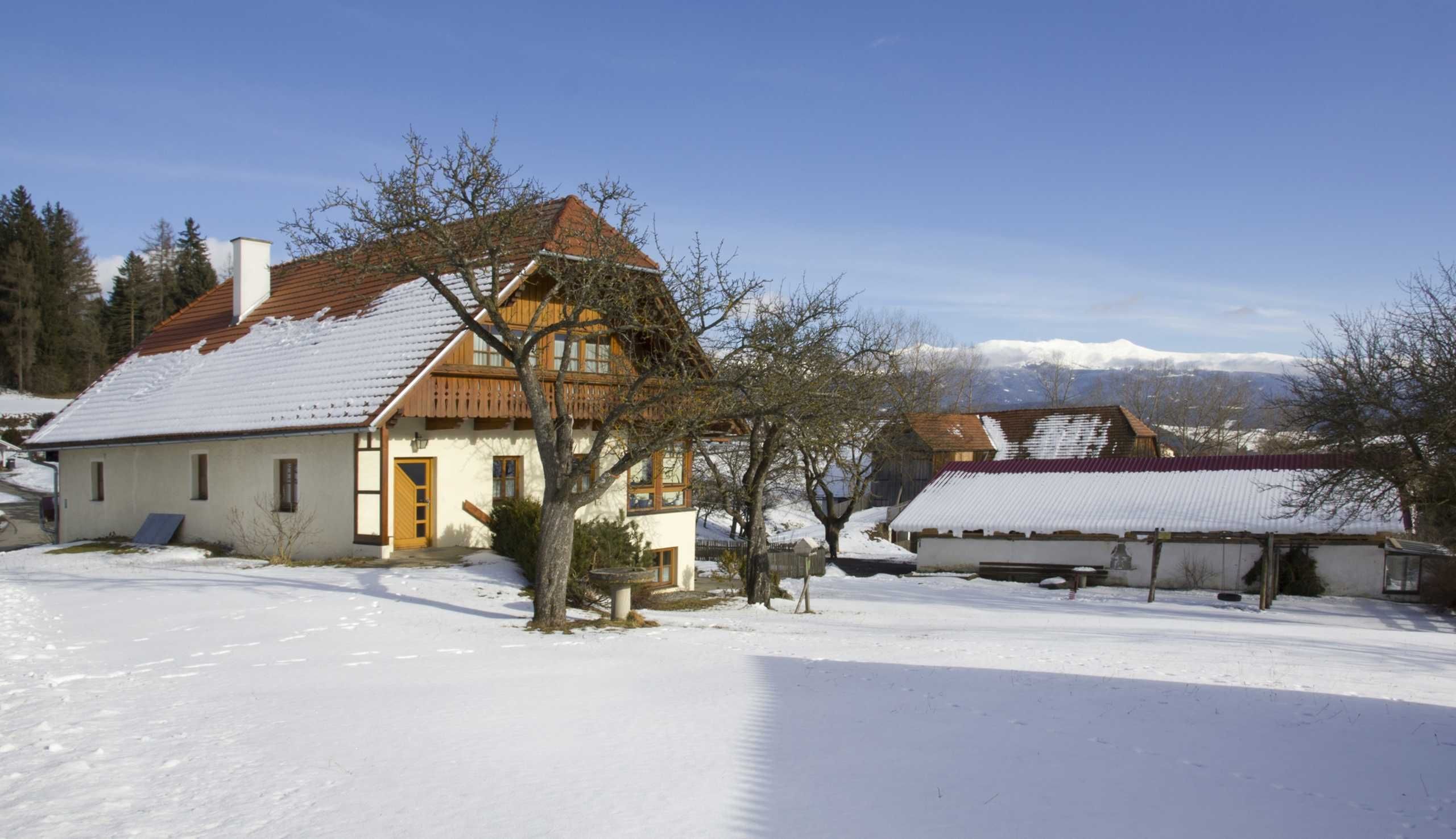 Unser Biobauernhof liegt im Naturpark Grebenzen im Ortsteil Mariahof. Im Winter führt die Langlaufloipe direkt am Haus vorbei.
