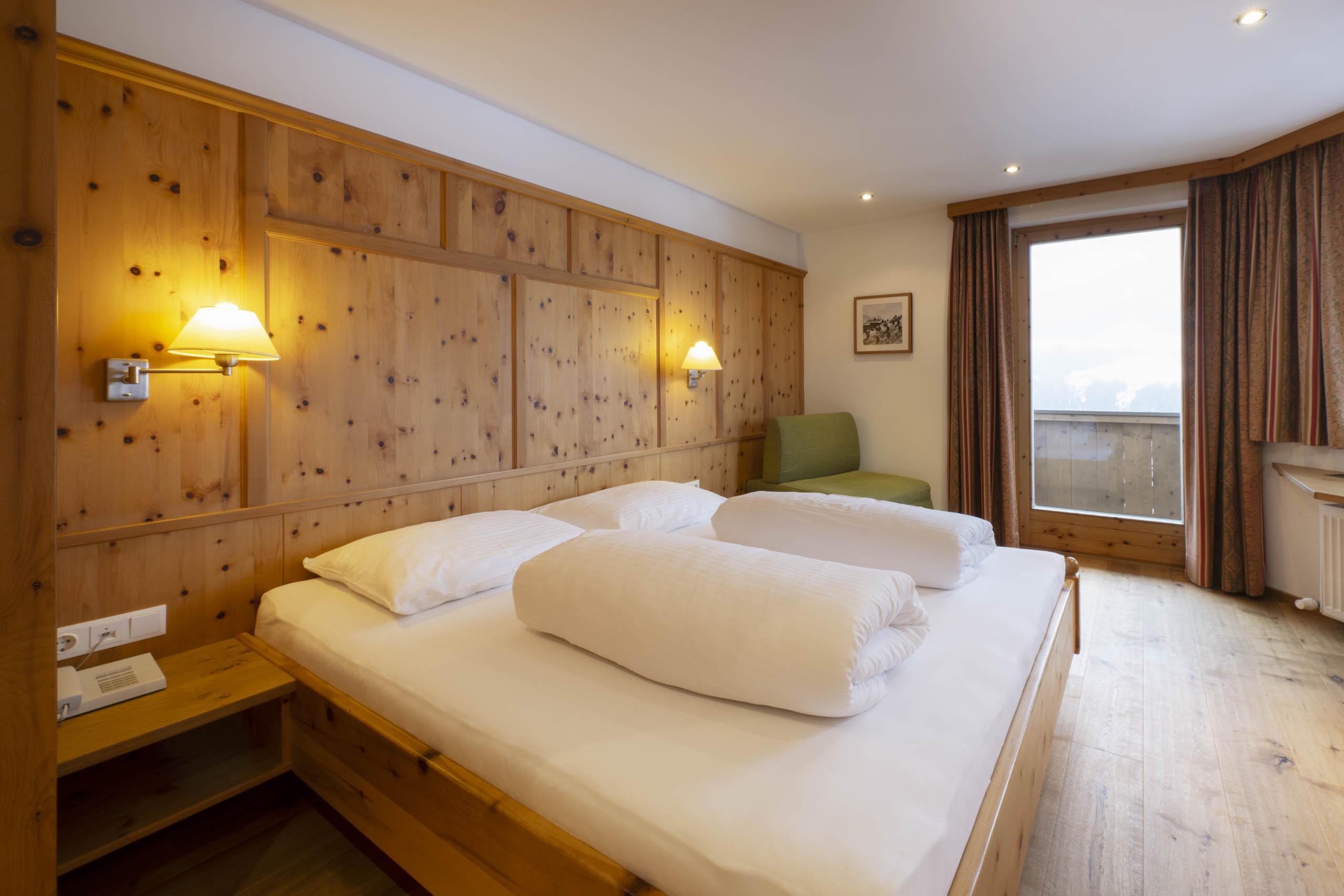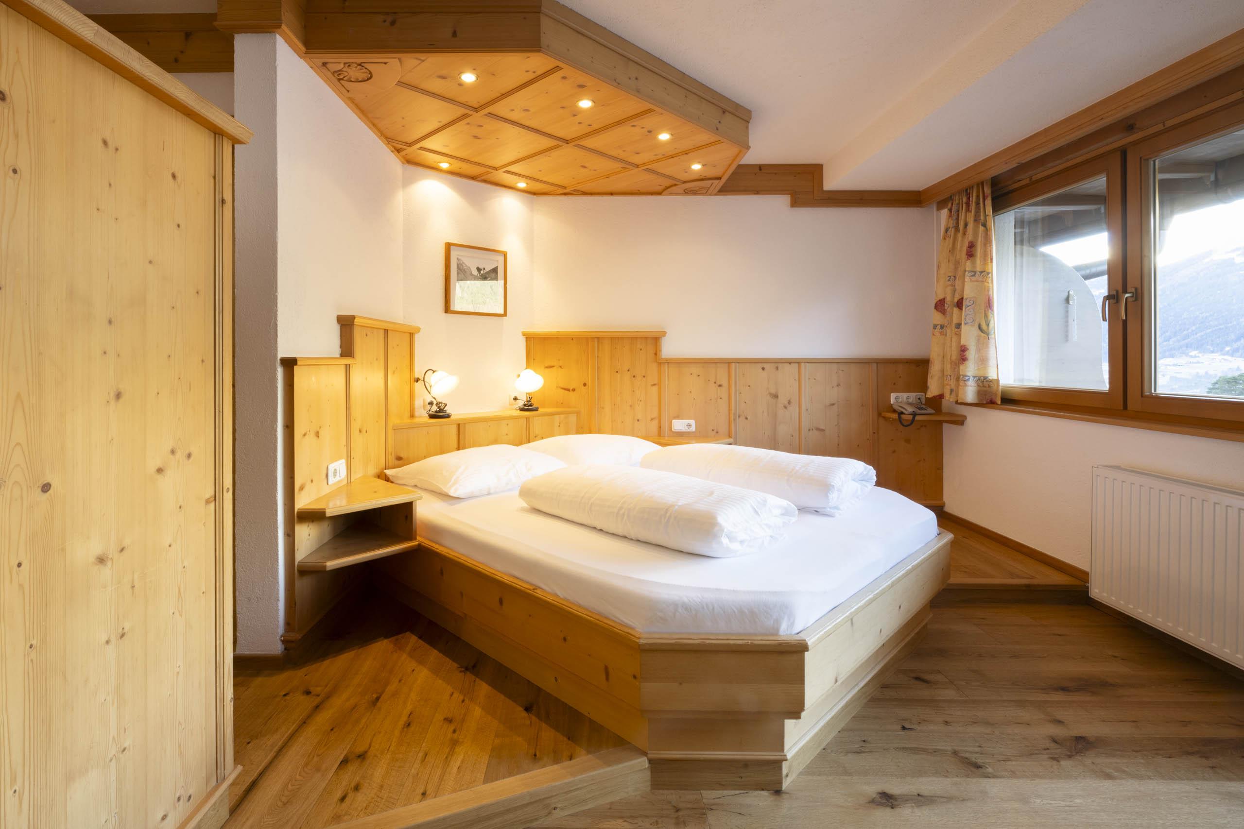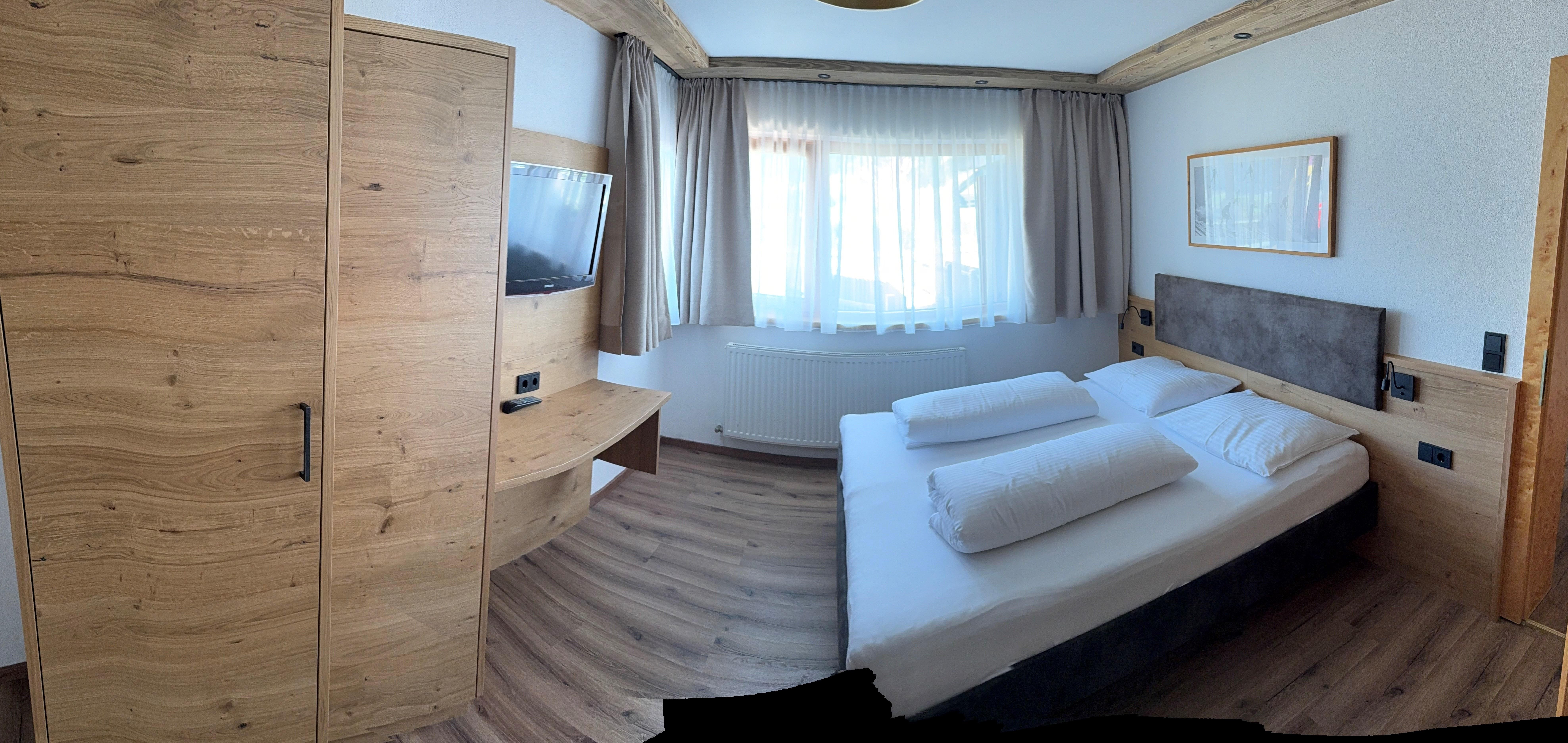 Schönes, großzügiges Zirbenholzzimmer für maximial 3 Personen belegbar. Ausgestattet mit Eichenholzparkett, Dusche/WC, Haarfön, Telefon, TV mit Sat-Empfang, gratis Zimmersafe und Balkon mit Blick auf die Stubaier Bergwelt