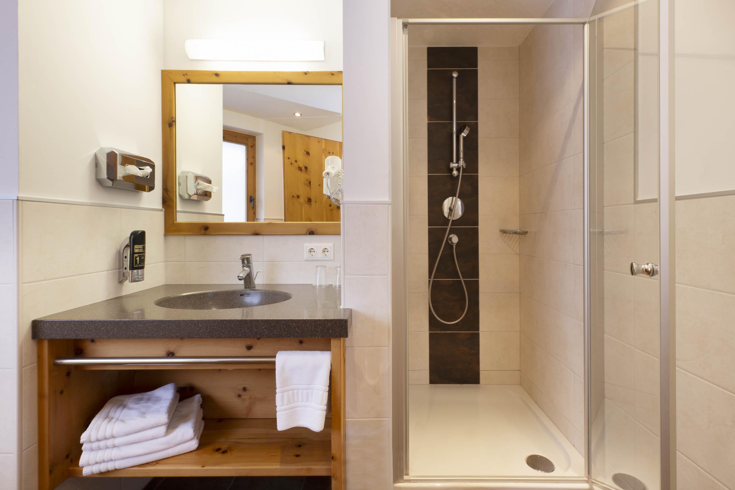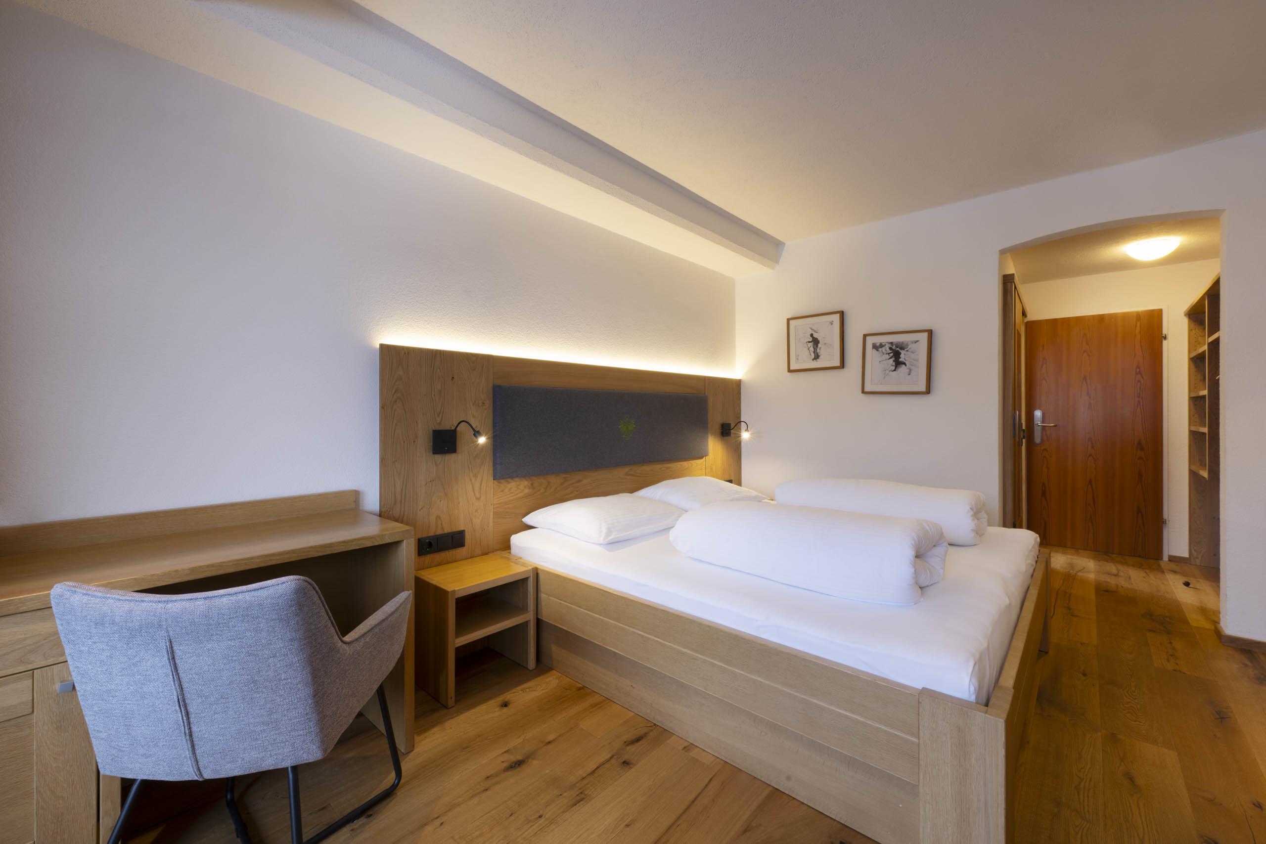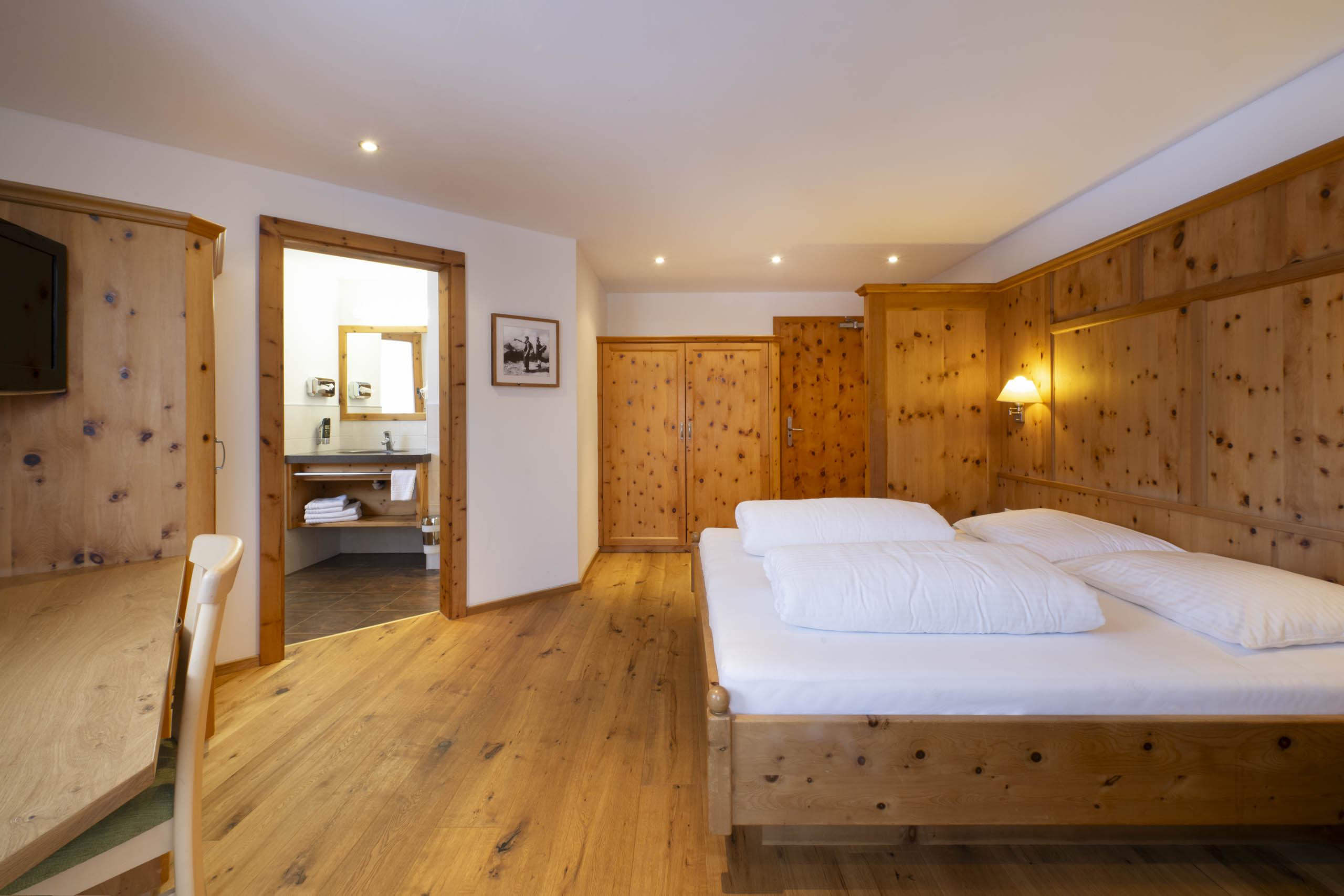 Schönes, großzügiges Zirbenholzzimmer für maximial 3 Personen belegbar. Ausgestattet mit Eichenholzparkett, Dusche/WC, Haarfön, Telefon, TV mit Sat-Empfang, gratis Zimmersafe und Balkon mit Blick auf die Stubaier Bergwelt