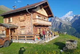 Dem Himmel ganz nah liegt unsere Almhütte auf 2130 m in Alleinlage, umgeben von saftigen Wiesen und Bergblumen.