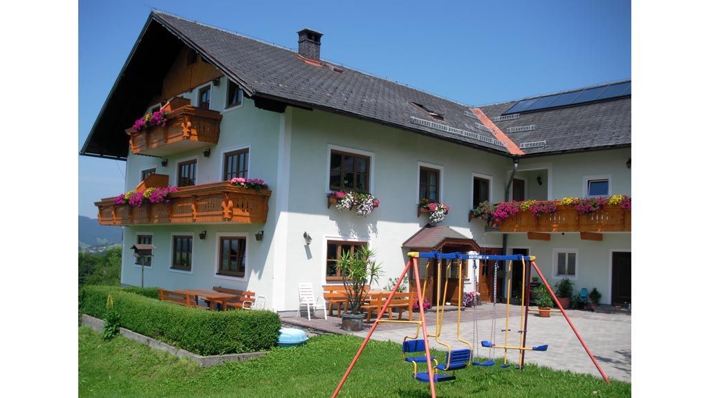 Unser Bauernhof befindet sich in ruhiger Lage am Mondseeberg mit Blick auf den Ort, See, sowie auf den Schafberg, Schober und Drachenwand.