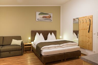 Wirtshausbrennerei Krenn - Einzelzimmer Obst ausgestattet mit Naturholzmöbeln